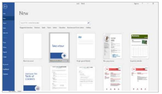 - a Click on the File tab, click on New. In the Backstage view / File टैब पर क्लिक करें, New पर क्लिक करें। Backstage view के अन्दर